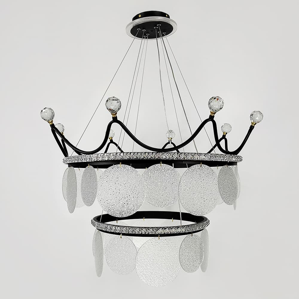 Елегантна серія підвісних люстр у формі корони — вишукане рішення для стильного та витонченого інтер'єру. Ця модель поєднує унікальний дизайн, сучасні матеріали та функціональність, створюючи атмосферу розкоші та тепла у вашому домі.